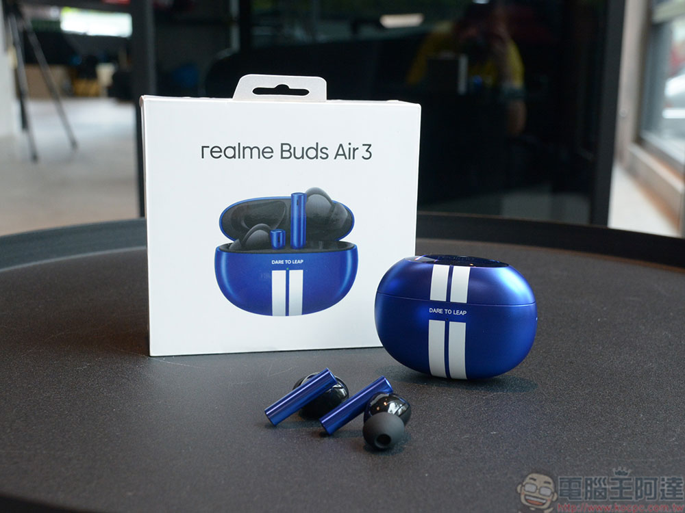 與 GT Neo3 利曼同名,採用同款藍色雙條紋設計,為潮流與科技碰撞出的潮酷火花進行詮釋。realme Buds Air3 將旗艦級降噪技術越級下放,達到同價位最高 42dB 主動降噪表現,並越級導入 4 千元以上產品才有的抗風噪技術,能智慧辨識並抑制風切聲,有感降低風聲干擾,同時為全球首款通過德國萊茵 TÜV 降噪認證的真無線藍牙耳機,打造同價位最有感降噪體驗。