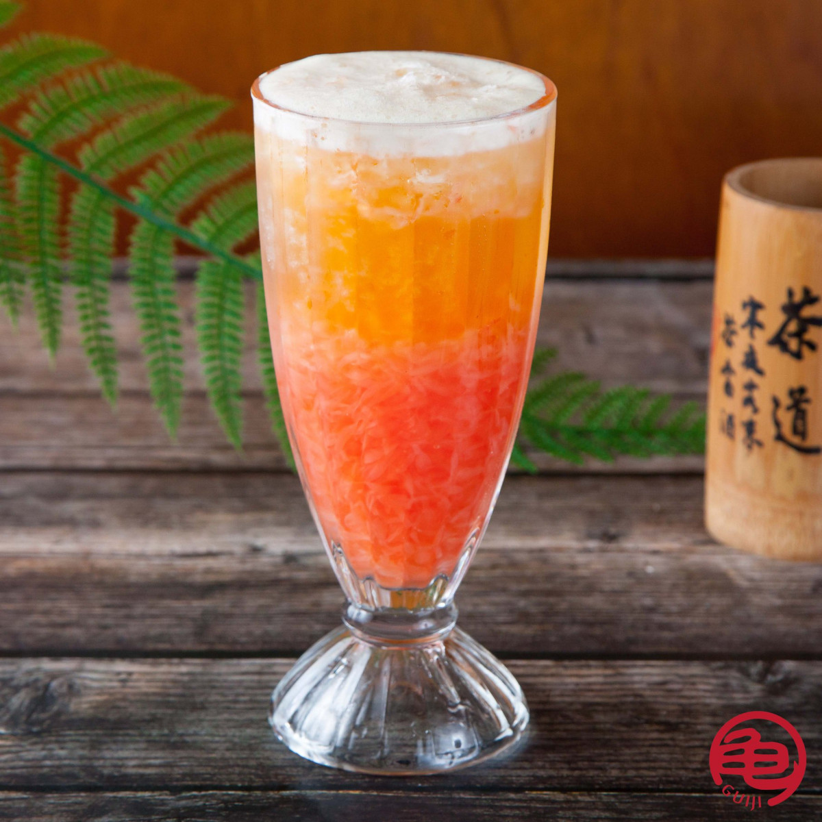 龜記人氣的「紅柚翡翠」一直都是熱銷冠軍,主打內含每日手挖超限量的新鮮紅柚,果粒滿滿、令人一口接一口,而且大方實在的份量、飽滿鮮豔的葡萄柚果肉,與綠茶結合後在口中迸發清爽回甘的好滋味真的讓人一喝就愛上!