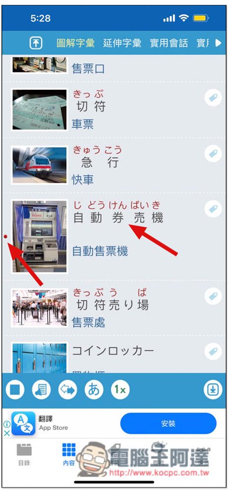 彩圖實境旅遊日語這款 App 已經有一段時間沒有更新了,不過在最新作業系統版本中還是可以使用,只是偶爾可能會碰到閃退狀況。另外,免費版只能學習前面 6 個日本旅遊主題,另外 17 個需要升級付費版才行,你可以先試試看,覺得不錯再考慮: