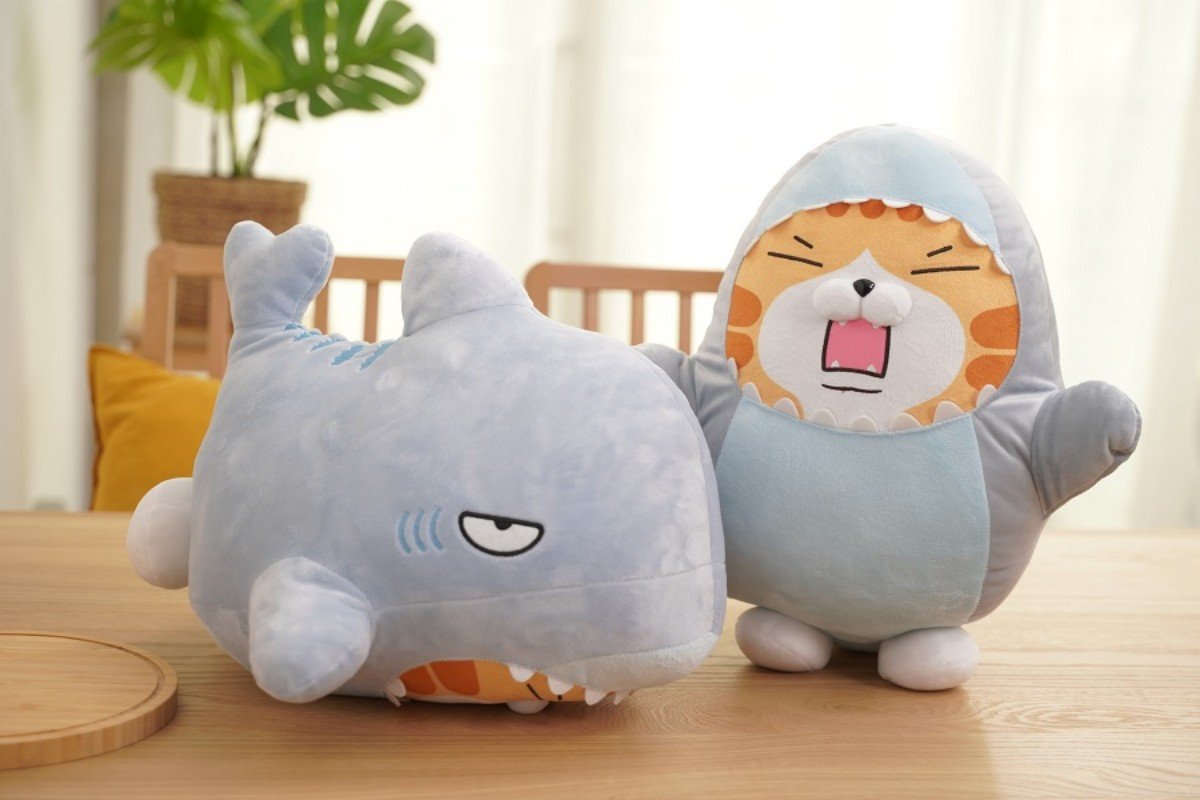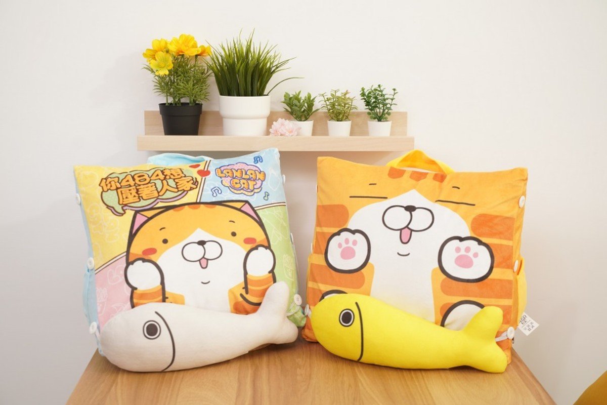 首先是粉絲們絕對要收藏的「鯊魚變裝娃娃」與「三角靠枕+抱枕」,讓妞妞們無時無刻都可以抱著白爛貓在家耍廢~三角靠枕做了側邊口袋設計,可以放遙控器、手機等用品,上頭的造型小抱枕還能三段式調整高度,想怎麼靠就怎麼靠,枕頭更設計為可拆式枕套,清洗也方便。