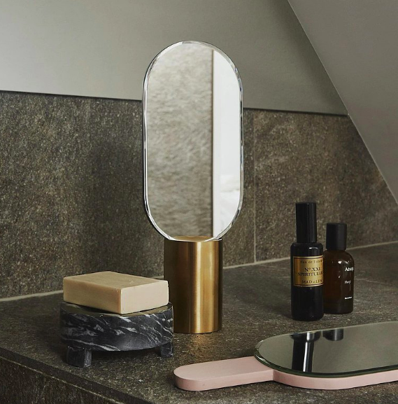 OYOY Renga 橢圓手持立鏡使用幾何卡榫的圓柱底座搭配上金屬材質,一整個質感爆棚,鏡子採用俐落的長橢圓形設計,極簡又不失高級感,大人成熟感的風格展現,相當適合走輕奢深色調裝潢的房間,不管是擺在梳妝台當化妝鏡,還是擺在玄關處讓你出門前做最後的妝容確認都很可以喔!