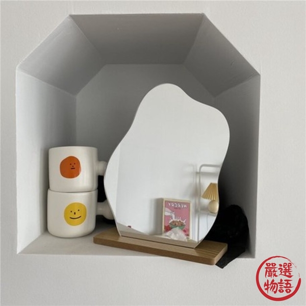 簡約波浪化妝鏡無邊框設計搭配上不規則的波浪形狀,就像天空中夢幻的雲朵一般,是近期韓妞很愛的化妝鏡,浪漫俏皮的感覺,成為房間裡質感UP UP的好物。還有附上木質底座,讓整體看起來更加的溫潤有氣質,而且底座上有特別設計凹槽可以輕鬆的架起鏡子,使用上相當的便利。