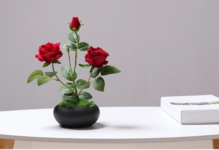 仿真花盆栽以絹花代替真花,搭配上花瓶擺放在桌上就與一般的盆栽無異,但卻可以省去澆水、施肥等時間,就能夠讓家居生活增添品味與美感。許多仿真花盆栽從花的種類到花瓶都可以客製化選擇,可以依照擺放位置選擇喜歡的款式。