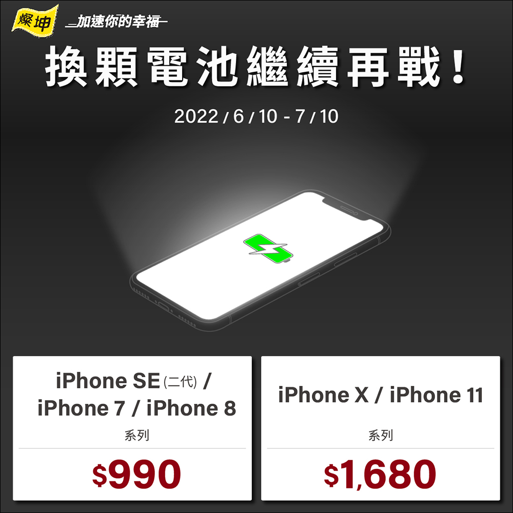 燦坤 3C 推出 iPhone 原廠電池舊換新活動, iPhone 指定機型更換最低只要 990 元