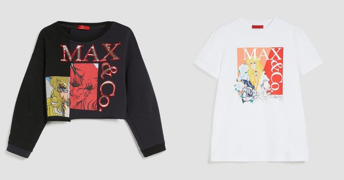 MAX&Co.這次的聯名係系列以服裝及配件為主,服裝的部分有MAX&Co.標誌性的長短袖上衣,上衣的圖案多以動畫中的經典畫面作視覺設計,同時搭配素描和方格漫畫的筆觸詮釋圖像風格,另外再搭配上亮片點綴,呈現復古華麗的休閒穿搭,同系列也有棒球帽可以作為單品配件選擇。