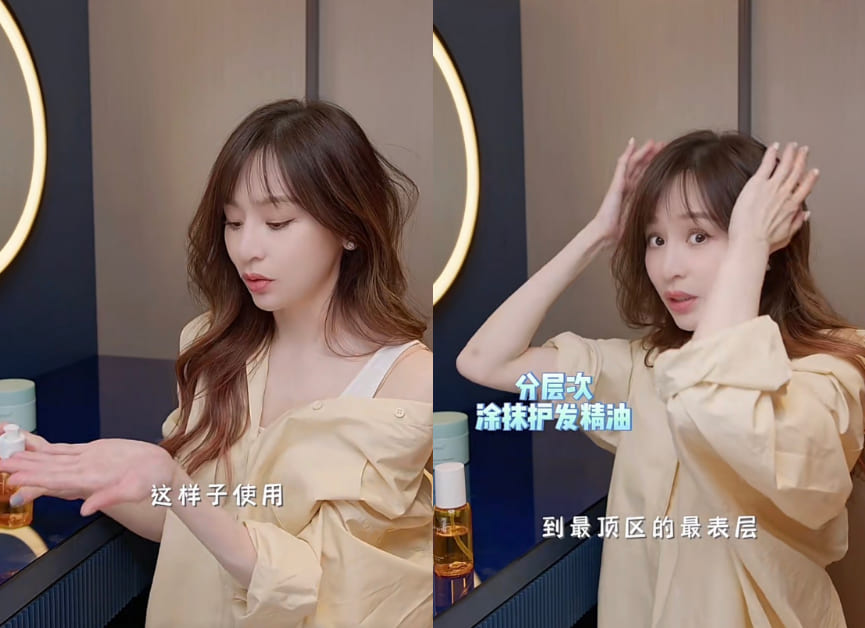 王心凌提到自己由於工作關係,必須時常做造型,造型品疊擦、燙捲、綁髮種種傷害,長期下來對於髮質真的是致命傷,因此無論造型前後、夜晚清潔時都會特別加強護髮程序!像是在洗完頭後,趁著髮絲還濕潤狀態時,她會搭配髮油先在手心搓熱,而後將頭髮分層三層,從下層開始按摩至最上層頭髮,這招既能改善毛躁也不怕留下油膩扁塌感。