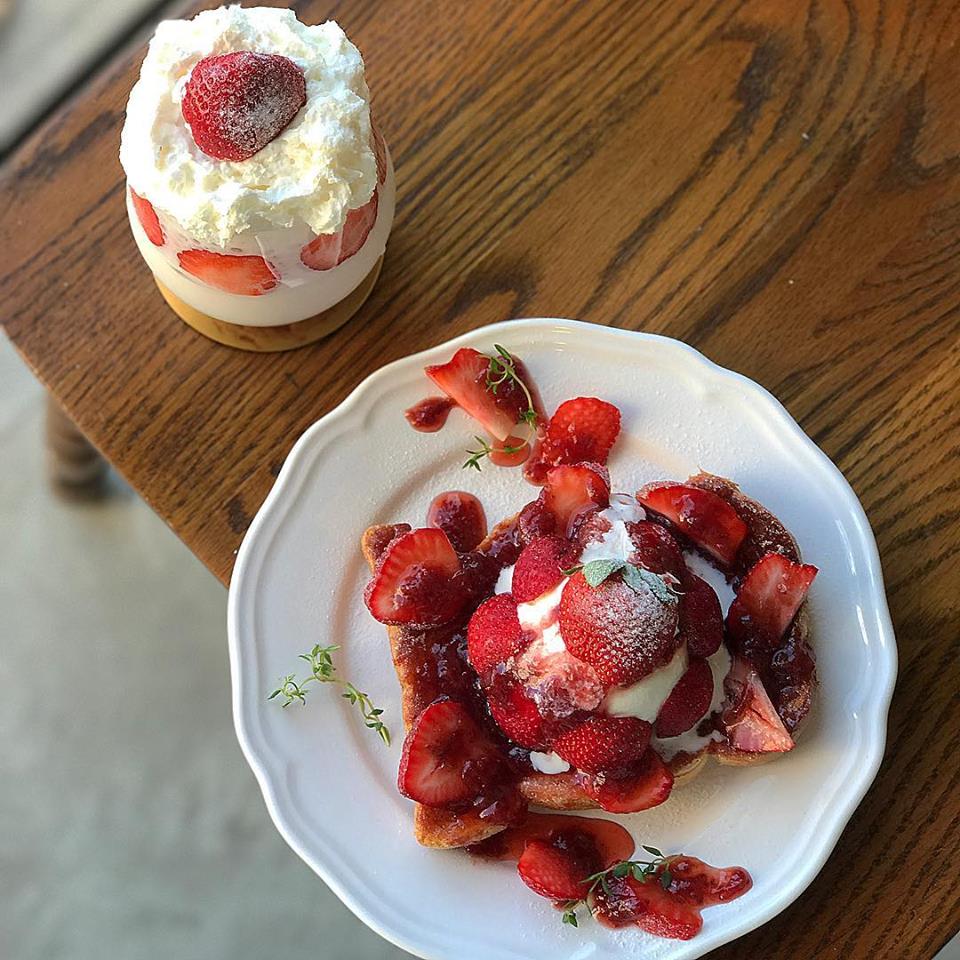 新鮮的草莓擺放,光看畫面就讓人心花怒放!再搭配上甜蜜的草莓醬,以及酥香的餅皮和乳酪餡~酸酸甜甜使草莓塔酸而不膩!