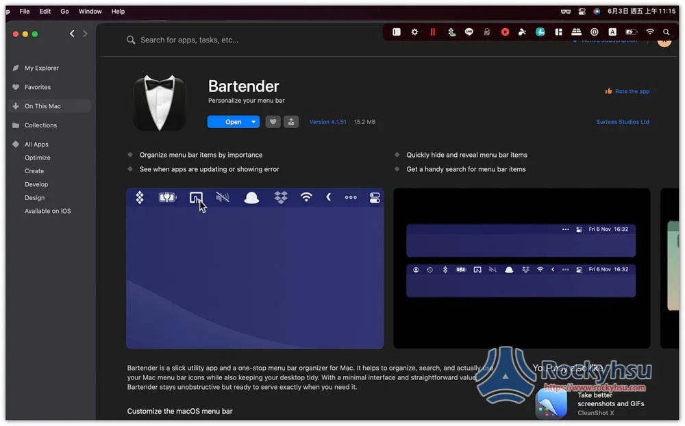 對於也有選單列空間不足問題的朋友,相當推薦試試這款,操作簡單、功能又齊全,應該是現今最強的選單列控制工具。上面我也只是大致介紹主要功能,這款還有更多功能可以玩玩。