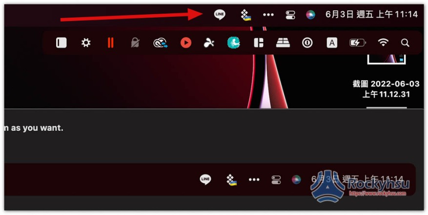 像我把 LINE 與 Setapp 移動到 Shown menu bar items 後,選單列就還會繼續有這兩個 App 功能圖示,不用按 …: