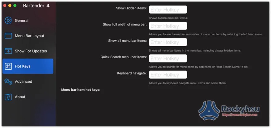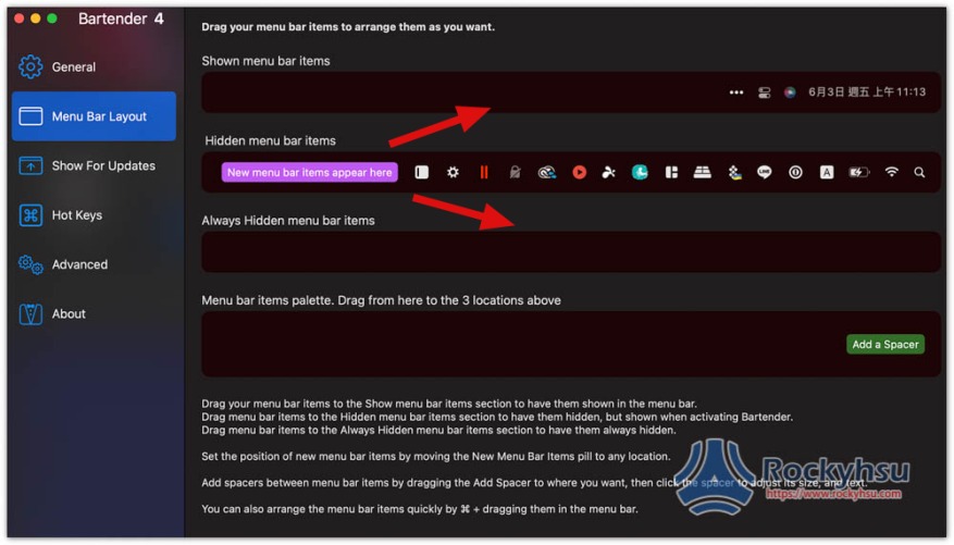 - Always Hidden menu bar items:永遠隱藏起來,完全用不到的 App 功能圖示可以移到這邊。