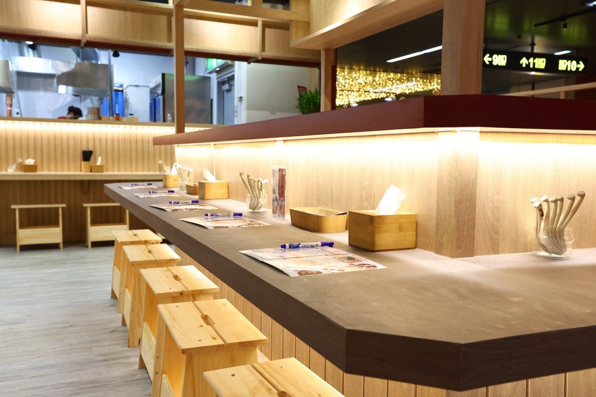 店內裝潢從桌椅到櫃檯區都是原木系色調,也沒有過多的飾品擺設,視覺給人一種清爽感與一致性,營造乾淨且俐落的用餐空間,而座位區也有老麵友熟悉的屋台吧檯,讓人有一種瞬間來到日本居酒屋的感覺~