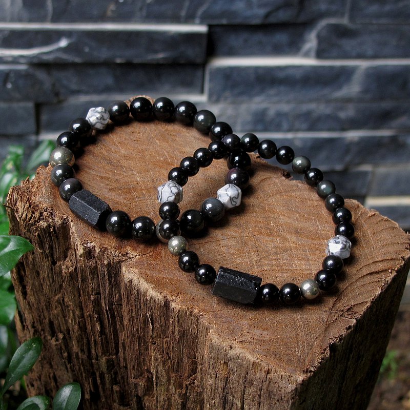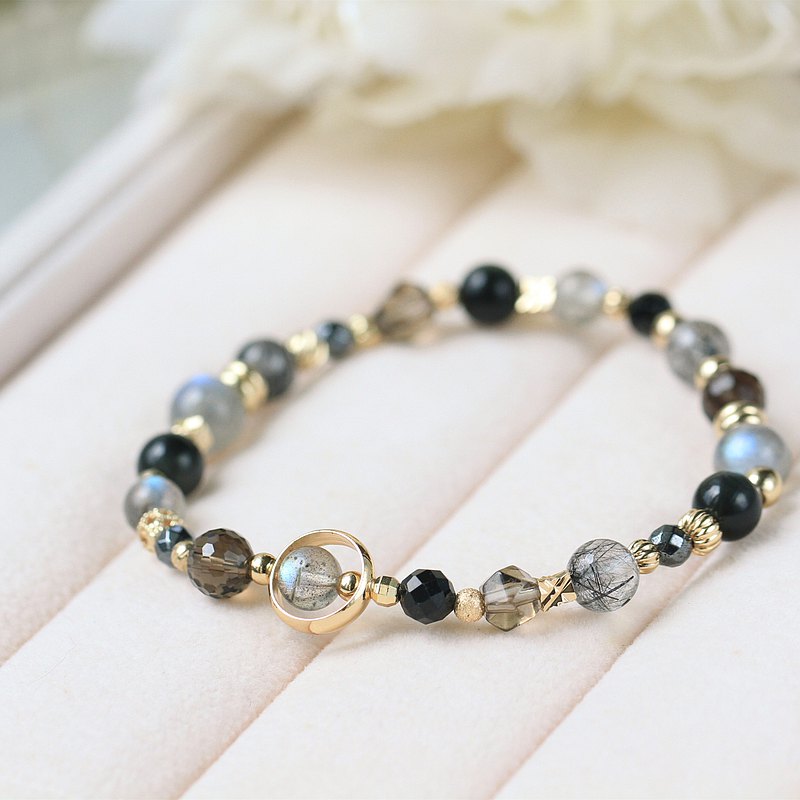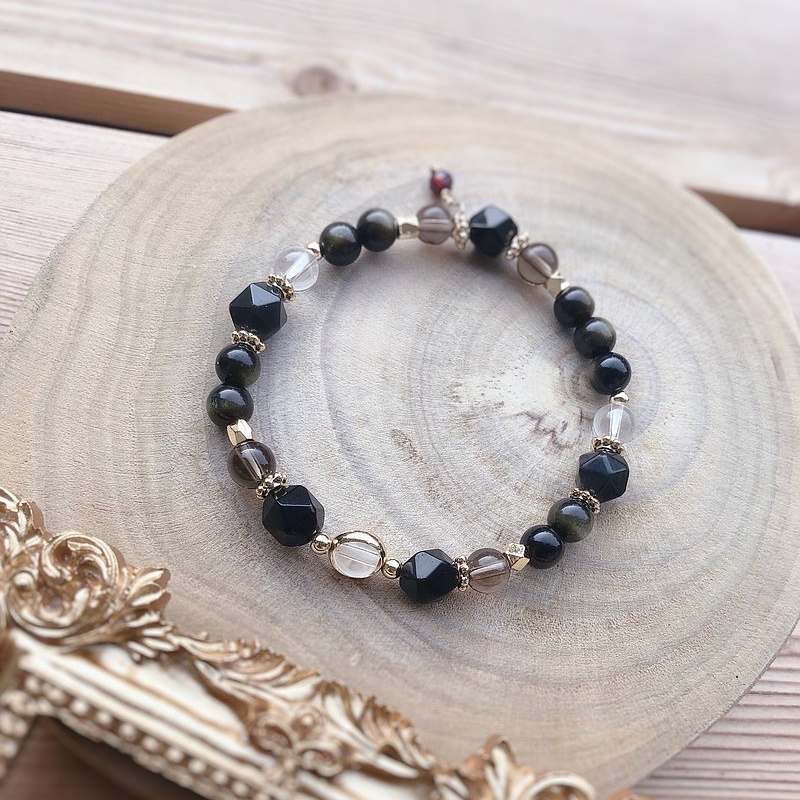 首先要推薦的這款黑曜石手鍊很特別,手鍊上除了有黑曜石、金曜石之外,還特別加入了茶晶、白水晶等不同種類的水晶,一方面可以平衡各種情緒,另一方面也能達到強化淨化、忘憂的功效。
