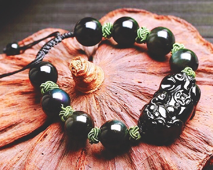 水晶手鍊的功效是「左進右出」,黑曜石也不例外。把黑曜石戴在左手上,可以把正能量引入體內,並抵銷體內其他的負能量;把黑曜石戴在右手上,可以排出體內的負能量,避免身體受到負能量影響。