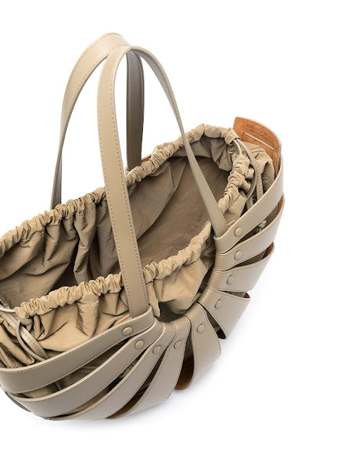 BOTTEGA VENETA這款貝殼造型的鏤空包,皮革鏤空設計搭配鉚釘裝飾,非常有自我個性。內袋是皮革抽繩開口,連側邊LOGO處理都非常細緻。另外還有白色、碧松石綠、亮黃色等選擇,其中開心果綠更是春夏重點色系,各色都有特點,小號手提包也很可愛!