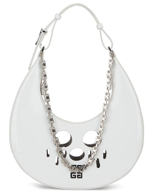 滿月包獨特的魅力依舊是無可取代的!GIVENCHY高雅的漆皮小牛皮,印有黑色LOGO圖案,包身添加鏤空造型設計,搭配特殊的雙G造型鍊帶,嶄露高貴氣質。設計上簡約大方,卻帶有很強的時尚氣場,是典型的名媛包款~簡單搭配就很好看!