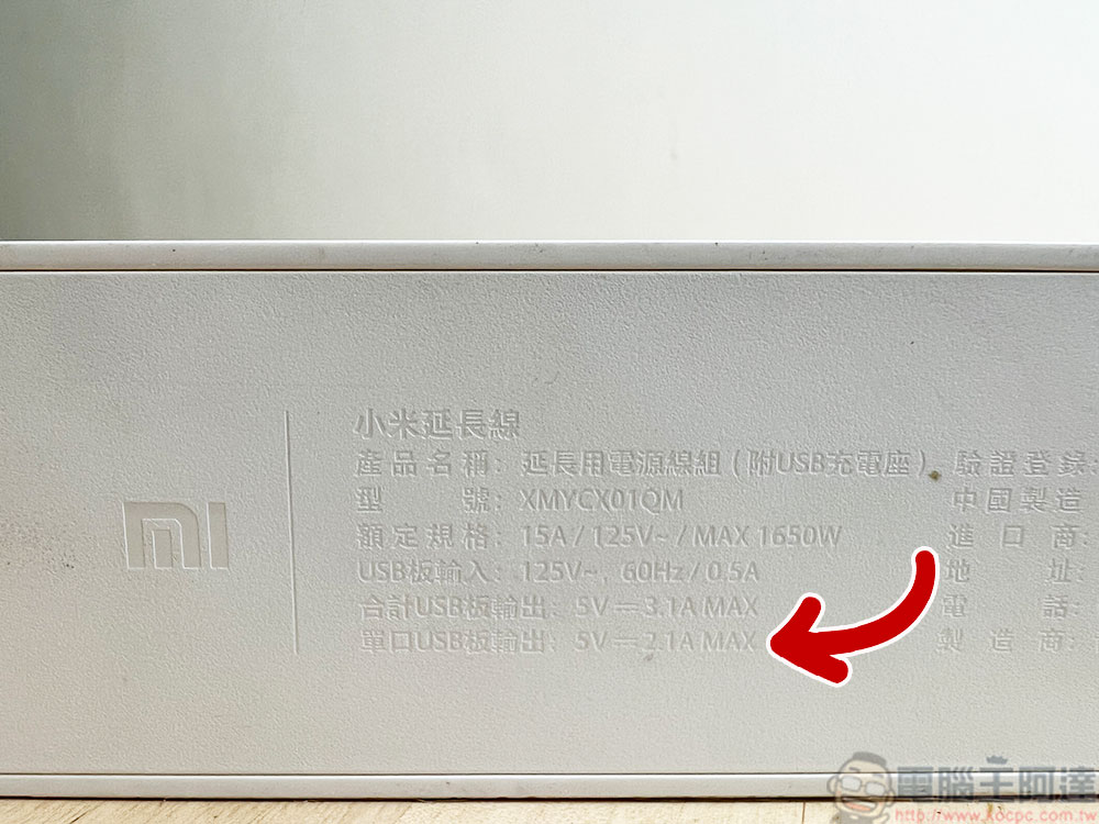 在近代很多延長線上都會加上 USB 連接埠以供你為行動裝置充電而毋需另外的變壓器,當然這帶來很大的便利,但別看到 USB 孔就開心,記得要檢查一下輸出的額定值,通常配置在延長線上的 USB 連接埠通常會是 1 或 2 安培(通常標記為 1A 或 2A)。現在大多數手機都具備有快速充電的能力,但是必須搭配專用或高瓦數的變壓器,如果你不需要快速充電,透過延長線上的 USB 連接埠充電還是可以的,只是會需要比較長的時間,比較適合睡前充電使用。舉例來說,像下面這個小米延長線的 USB 單一輸出就是最大 2.1A。