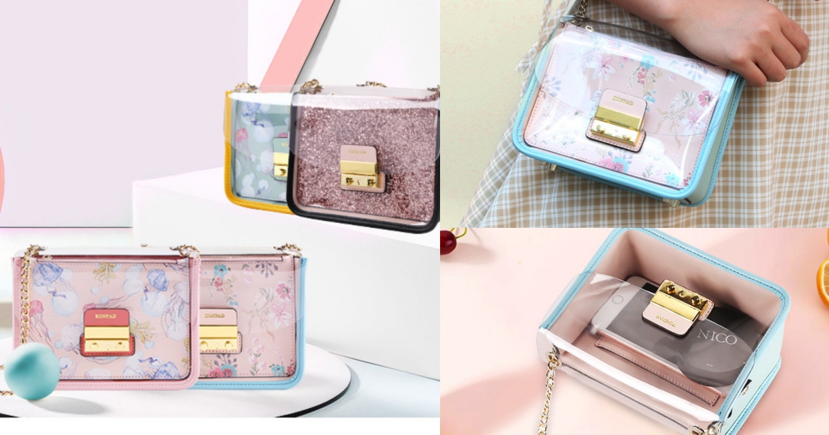 透明的PVC材質創造出清爽的感覺,再搭配粉嫩色彩,背出門絕對超級吸睛!有櫻花粉、薄荷綠等選擇,推薦給喜歡色彩豐富又有繽紛感搭配風格的你!