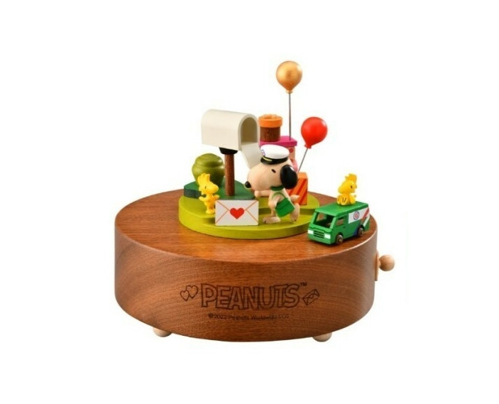 以木質溫潤質感呈現SNOOPY郵差及郵政經典元素,還有胡士托乘坐郵車隨音樂環繞,精巧可愛。