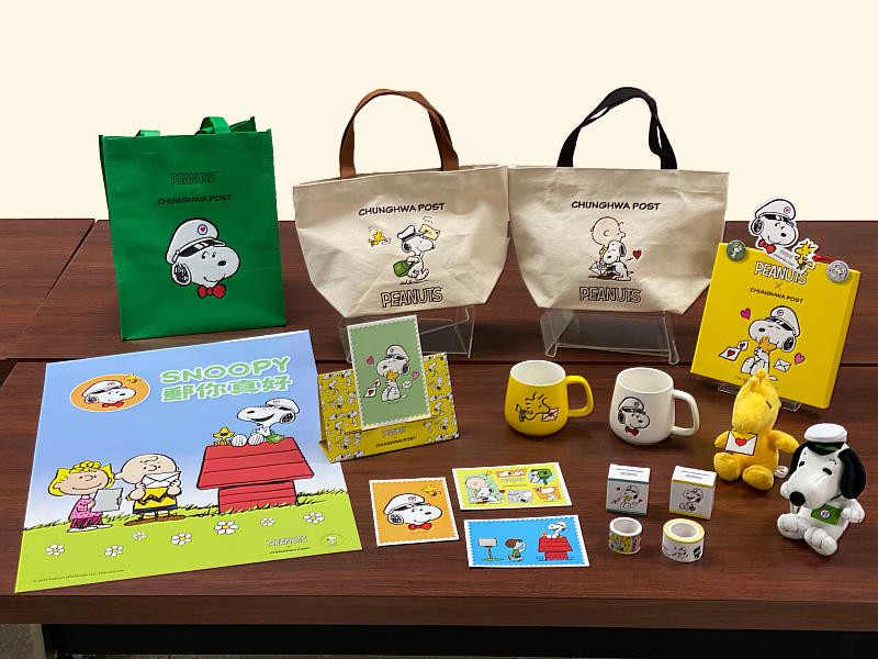 中華郵政「SNOOPY郵你真好」史努比聯名集郵商品,共有歡樂音樂鈴、同樂旅行袋、溫情帆布包、郵情馬克杯2款、絨毛娃娃吊飾2款、寄情明信片、情意片片貼、心情留言貼、深情郵摺及「郵你真好限量款A組」等逾十款商品,將採限量發售,發售當日即可洽各地郵局窗口、郵政博物館或中華郵政集郵電子商城訂購。