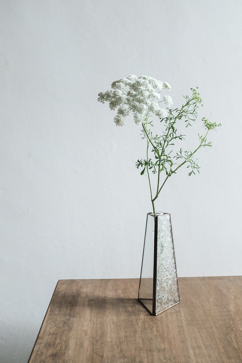 隨著時代的變遷,懷舊的事物能否換個方式保存下來?這款海棠花玻璃花器很特別,使用的是老屋改建拆卸下來的壓花玻璃,回收再製變成美觀的錐形花器,擺在家中可以增添幾分懷舊的氛圍。