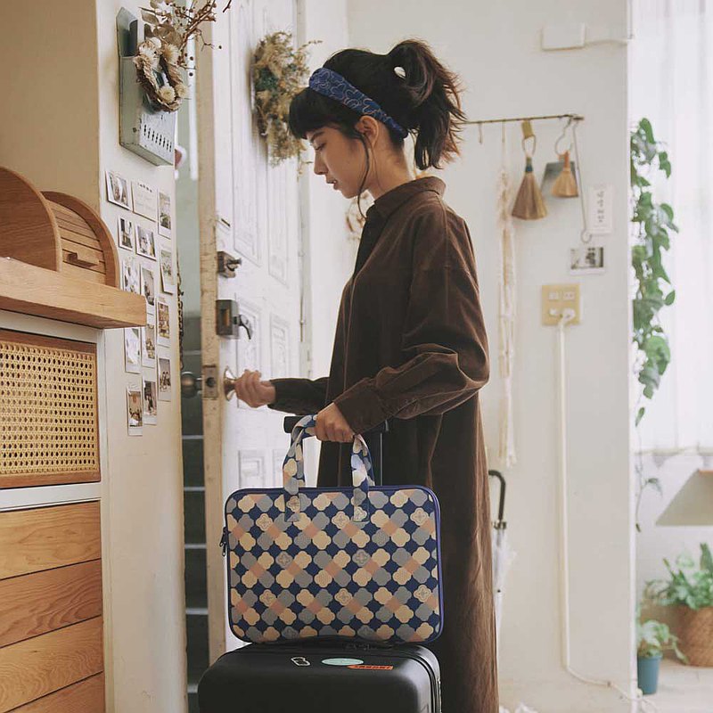 這款由印花樂推出的筆電收納包,包包上有著復古的海棠花圖騰,把它拿在手上時,整個穿搭風格瞬間多了幾分復古、優雅的氣質。收納包的容量也很足夠,不只可以收納 13 吋大小的筆電,前方還有一個收納袋,放手機、滑鼠或筆記本都很方便。