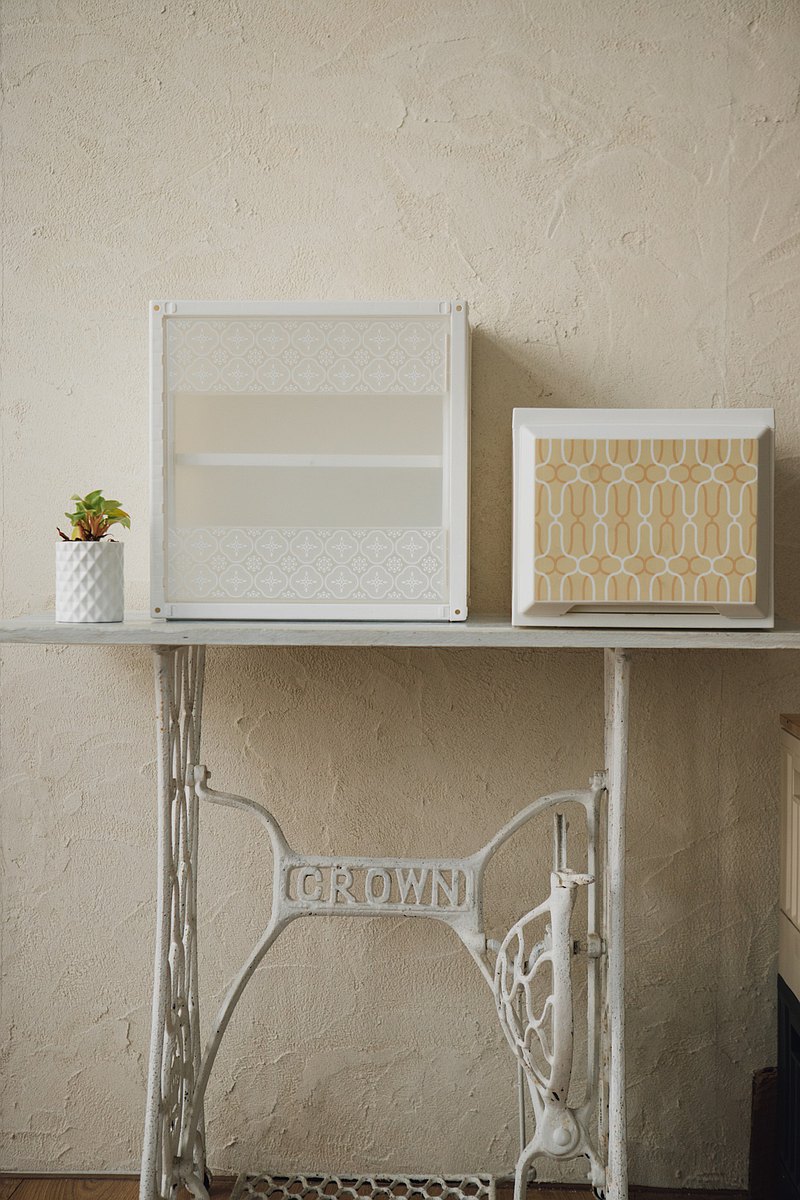 當白色的置物箱上,多了海棠花的印花花紋時,置物箱瞬間成了家中角落的藝術品!這款海棠花紋置物箱上有著海棠花的花紋,低調的白色花紋設計,給人優雅、靜謐的感覺,而且有兩層的收納空間,收納各種小東西非常方便。
