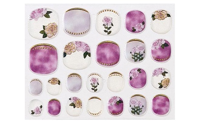 本名為楊玉環的楊貴妃,設計者特別將玉環的元素融入指甲貼上,結合了中國象徵「富貴」的牡丹,也是楊貴妃最喜歡的花種,搭配紫色的色底,呼應楊貴妃給人一種優雅的氣質。