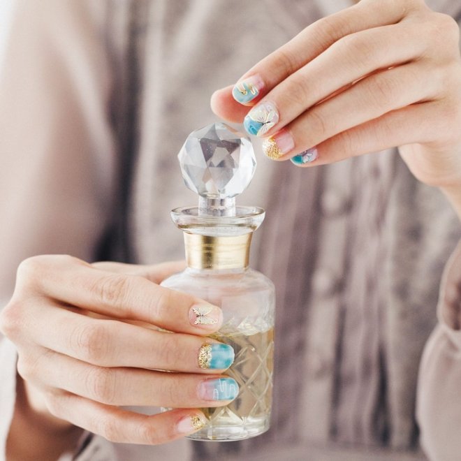 在野史傳言,楊貴妃平常身上喜歡配戴各種飾品,彰顯自己的高貴,而唐玄宗贈送給楊貴妃的定情之物,則是一枚翡翠玉鐲,後又有「貴妃鐲」之稱。這款美甲貼融合了翡翠與蝴蝶,黏貼在指甲上,就像有蝴蝶停留在指尖上翩翩起舞,舉手投足間非常的高雅。