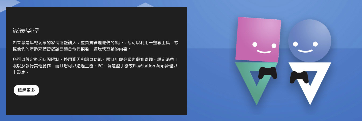 而如果是年輕玩家的家長或監護人,並負責管理他們的帳戶,則可以利用「家長監控」功能等一整套工具,透過主機、PC、智慧型手機或PlayStation App控管他們觀看、遊玩或互動的內容,並設定遊玩時間限制、停用聊天和訊息、限制年齡分級遊戲和媒體、設定消費上限及執行其他動作。
