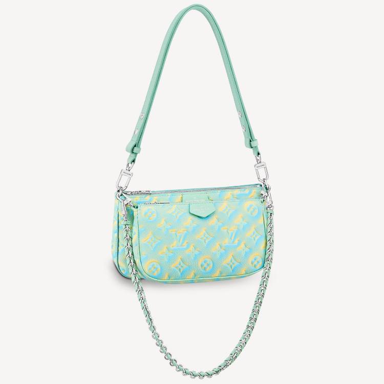 帶起子母包風潮的「Multi Pochette Accessoires」,在近期亦成為 Louis Vuitton 最熱賣包款之一,這次品牌運用獨家的染印技術,以薄荷綠為基底,搭配上漸層的鵝黃色,讓老花以 3D 錯視的方式呈現。(商品售價:NTD98,000)