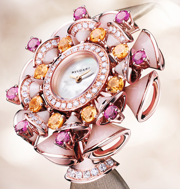 經典「Divas' Dream」產品系列,因其圓潤、流暢的「扇形」圖騰,成為Bvlgari(寶格麗)相當具標誌性的設計元素之一。靈感源自-永遠的謬思女神伊莉莎白泰勒於電影《埃及豔后》中的三角形眼妝,以及重現羅馬「卡拉卡拉浴場」中馬賽克大理石地磚的圓滑線條;更因其設計形似花辦一般,因此深受不少女性所喜愛。並透過品牌每一季新作、各式不一的珍稀寶石材質與鑲嵌工藝,在在都將這凝聚女性之美的象徵性系列,展現出絕對感性、嫵媚的風格美學。