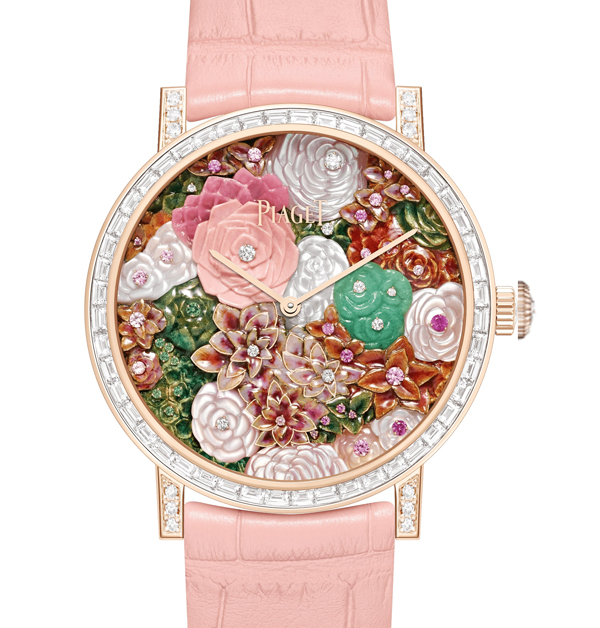 Piaget(伯爵)的超薄腕錶「Altiplano」系列,不只在薄度上追求極致,其實在傳統工藝上更是不斷突破,堪比藝術境地。正如同這只「Altiplano Rose Bouquet」珠寶腕錶,錯綜複雜的錶盤絕對是特色所在!而為了呈現出繁花盛景的面盤設計,工匠大師們傾力運用各自的技能及技術,共同打造出一只融合了金質鐫刻、琺瑯和裝飾寶石雕花…等精湛工藝的絕美之作,光是賦予視覺上的層次及變化就如此豐滿,且細膩非凡。若是真有人在夏天戴上這一只腕錶的話…相信任誰都會忍不住多看幾眼吧!?