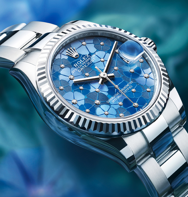 自1945年推出以來的「Datejust」腕錶系列,在經歷歲月洗禮之後,一直都是Rolex(勞力士)經典腕錶的典範,不論在功能還是美學風格,皆歷久彌新。在今年最新推出的女款「Oyster Perpetual Datejust 31」,則搭配著令人驚豔的藍紫色寶石花朵圖案錶面。圖案由24朵花卉組成,分別採用太陽光線、啞面或粒紋三種飾面處理而成;而在每朵花卉中央亦均鑲嵌一顆鑽石,讓人不禁聯想起自由生長的夏日草甸,閃耀璀璨光芒。