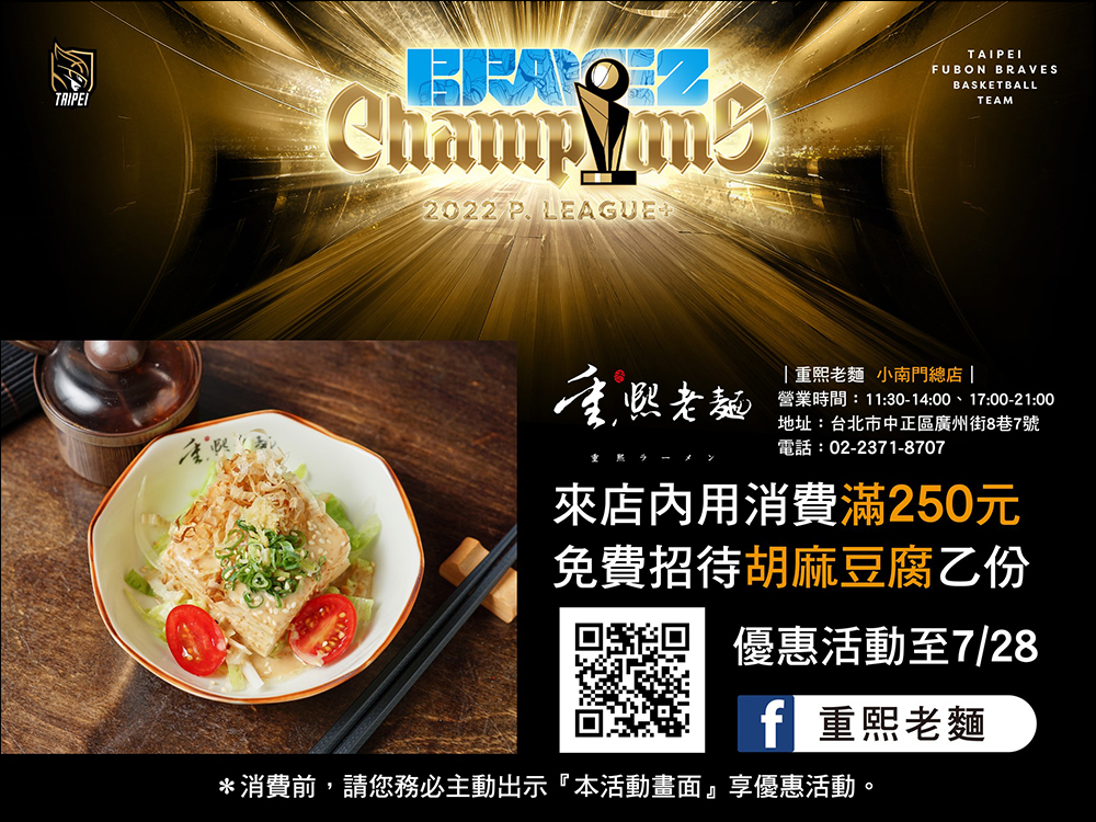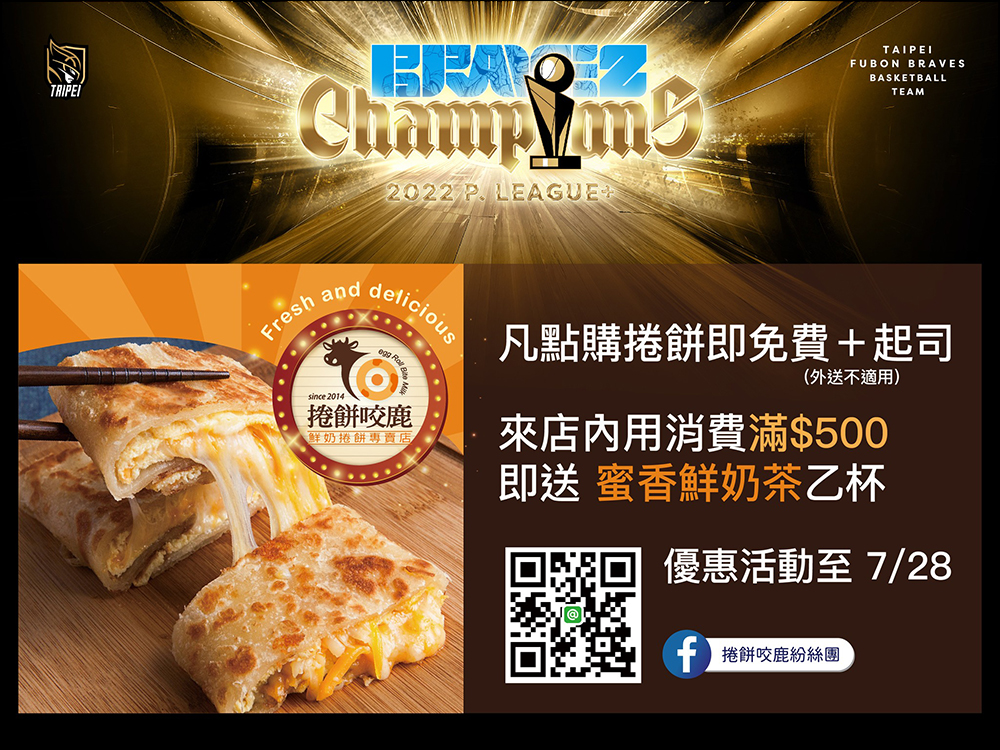 自 6 月 28 日至 7 月 31 日期間,憑富邦籃球票券享全品項買一送一。