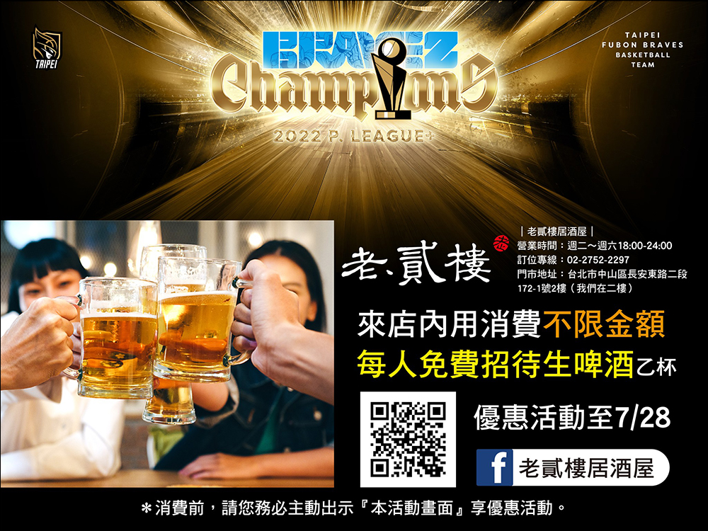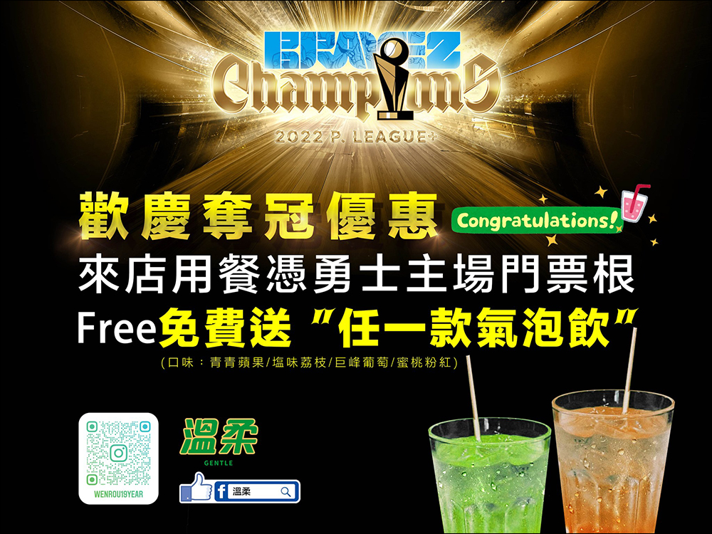 自 6 月 28 日至 7 月 28 日期間,持 P.LEAGUE+ 冠軍賽門票,即招待 shot 乙杯(每人限換乙杯)。