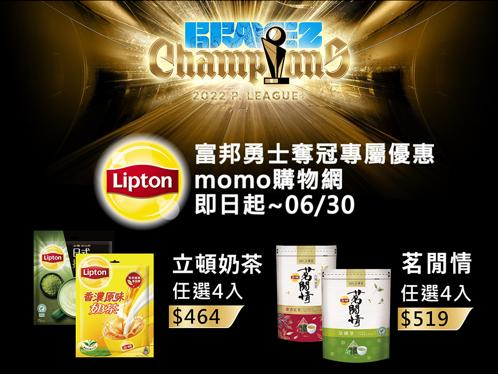 自 6 月 28 日至 6 月 30 日期間, momo 購物網購買立頓奶茶任選 4 入 NT$464 、茗閒情任選 4 入 NT$519。