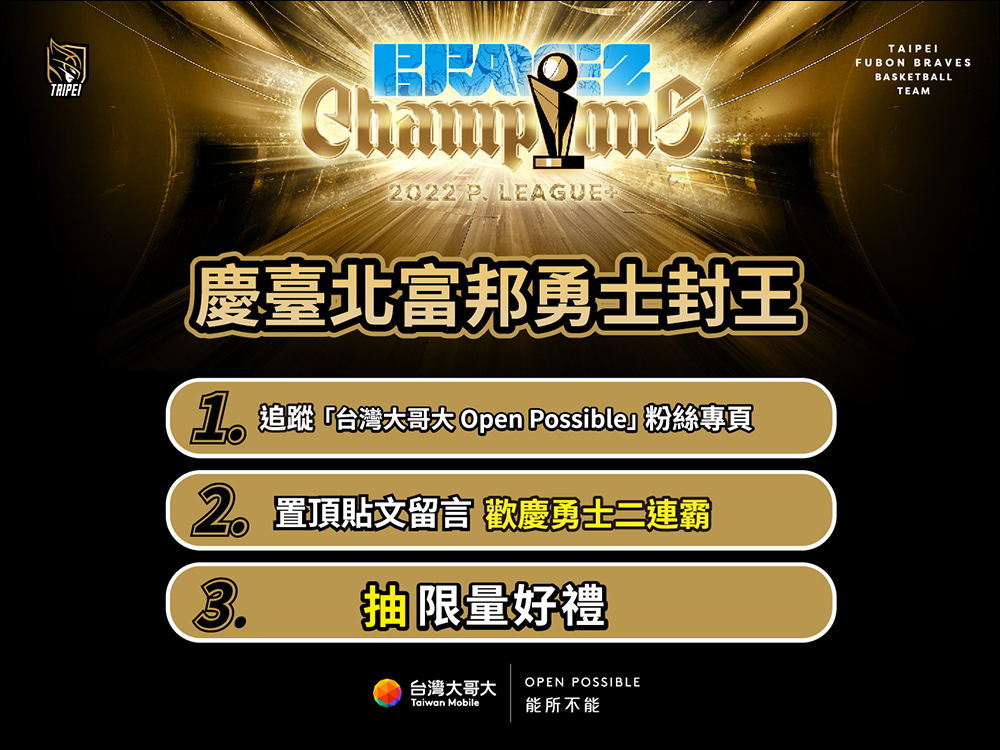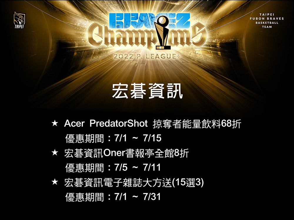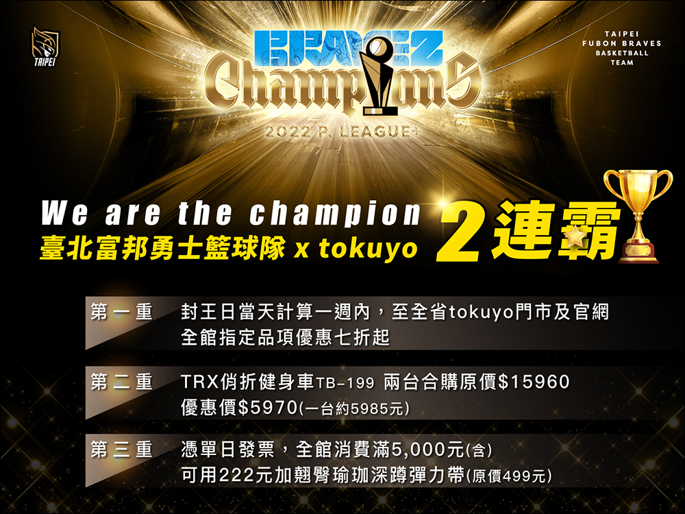日前職籃 P.LEAGUE+ 總冠軍賽臺北富邦勇士於系列賽以 4:1 封王,順利完成二連霸,昨(28)日包括富邦集團相關企業和合作的贊助夥伴也宣布推出奪冠優惠,包括 momo 購物網、台灣大哥大等 60 家優惠超豐富!這裡就為各位整理這次奪冠的優惠懶人包吧!