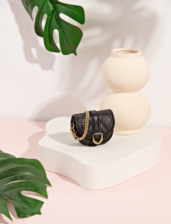 萬年百搭的小黑包,也得收一顆正流行的小廢包款式吧!Gabine菱格馬鞍包簡約俐落黑色細緻皮革光澤、經典的金色D字釦、個性金屬感鏈條,個性中不失低調奢華,仔細看還能發現精緻的菱格紋路,一揹秒變身率性千金。