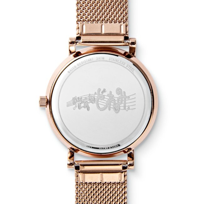 另外,在錶盤裡還裝飾「變身轉換器」,時刻指針尾端改由招牌音符造型,在錶背面也能找到粉絲們熟悉的「小魔女LOGO」,這根本是自帶音樂的手錶吧?(以上聯名商品都已經在日本官網開賣囉!)