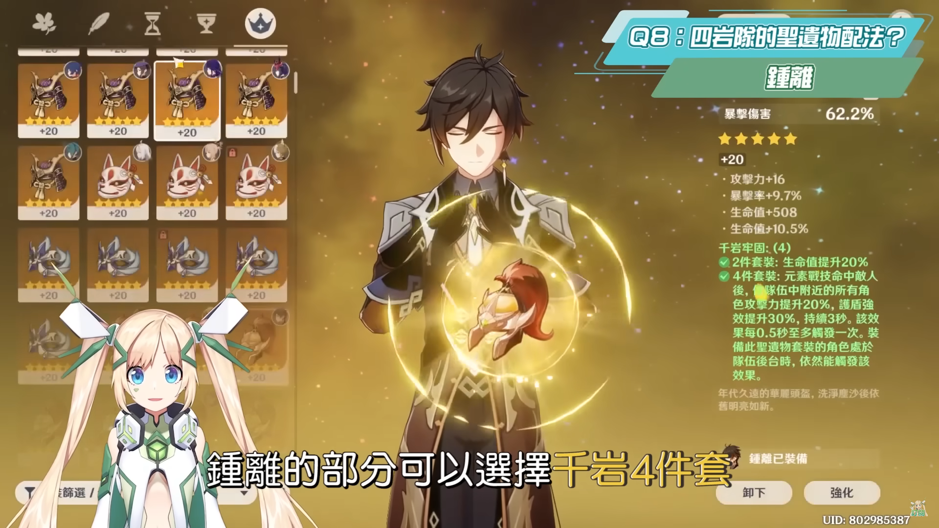 最後也總結一下關於四岩隊各成員的建議聖遺物配法。