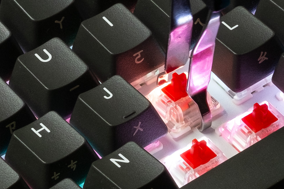 只能換鍵帽不稀奇,K86R 還能熱插拔鍵軸。出廠預設值是 Gateron 紅軸,打膩了可以自行更換成原廠 Gateron 茶軸或青軸,或是把不同的鍵位調整成不同的軸體,任君選擇。比如電競鍵區用線性軸,文書或數字鍵區用段落軸,在應用面滿足不同面向。