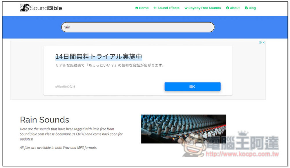 對於有在剪影片的人來說,一定經常都會用到聲音音效,先前我們曾介紹一個「Artlist 無版權音樂訂閱服務」就有超多高品質的配樂與音效,對於有預算的人相當推薦,但如果你沒有,SoundBible 這素材網站也不錯,提供大量無版權免費聲音音效,各種類型都有,像是有關於天氣、動物、以及情境音效等等,每一個音效都能線上試聽,介紹頁面也會清楚說明版權,只要遵循就能用在商業用途。