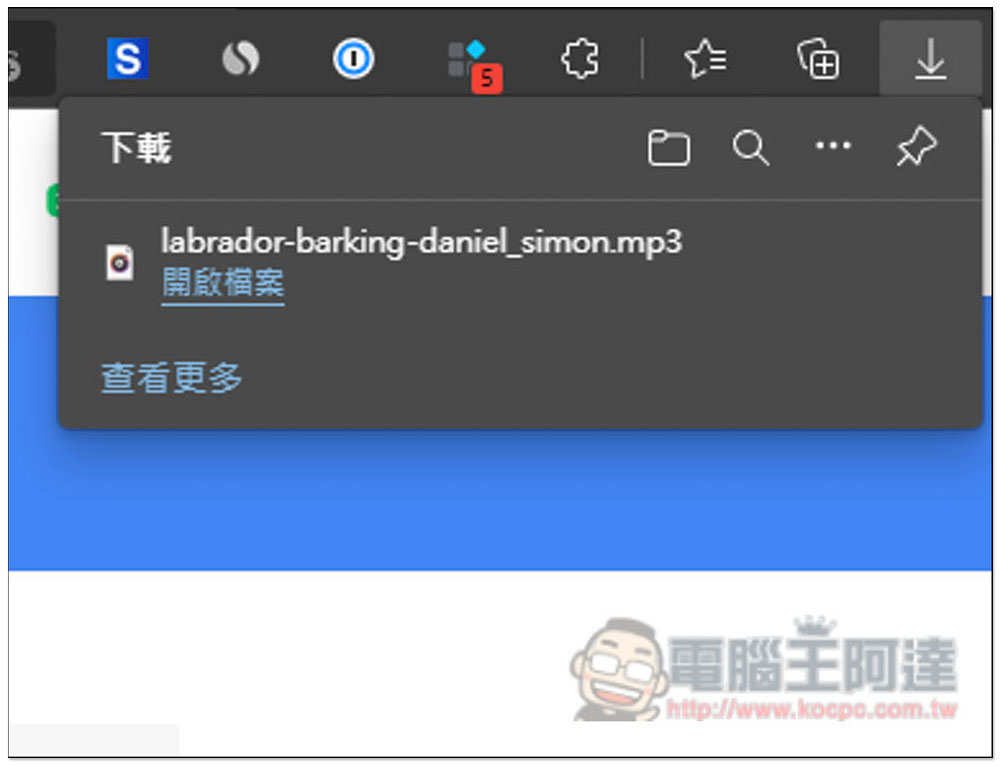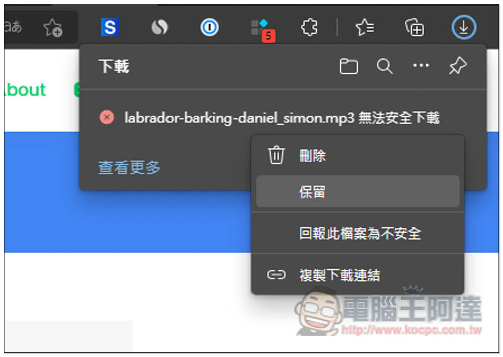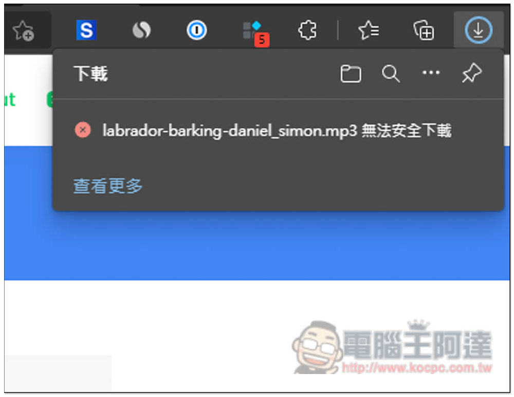 另外不知道是什麼原因,這網站下載的 MP3 或 WAV 都會跳出無法安全下載訊息,這時請點擊右邊的 ... 功能: