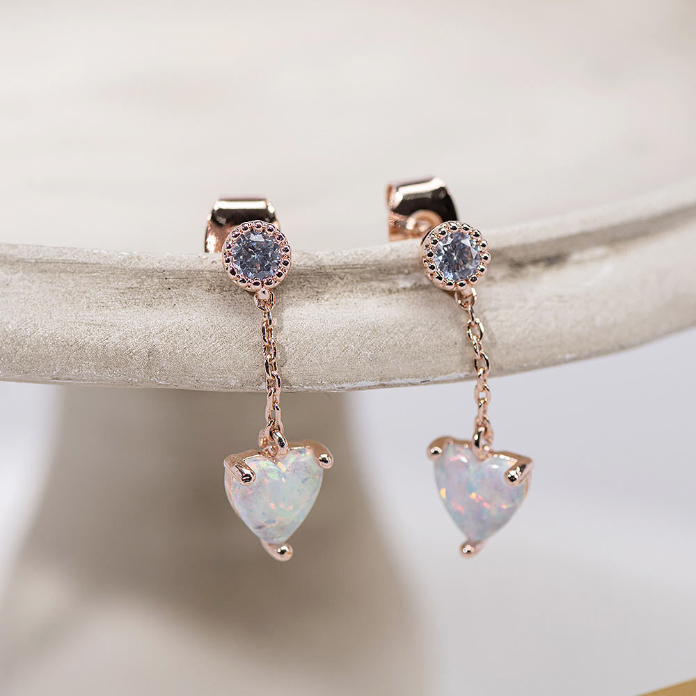 agete 是 1990 年誕生在東京青山的輕珠寶品牌,透過珠寶傳遞細膩質感的生活概念,使用獨特的「多層次珠寶」搭配,展現配戴者多面向並具深度的特質。這款 NOJESS 蛋白石戒指,以陽光灑在水面上的反射為靈感,營造出柔和漸變的色彩,非常美麗。蛋白石推薦 2:絢彩之心蛋白石925銀針耳環