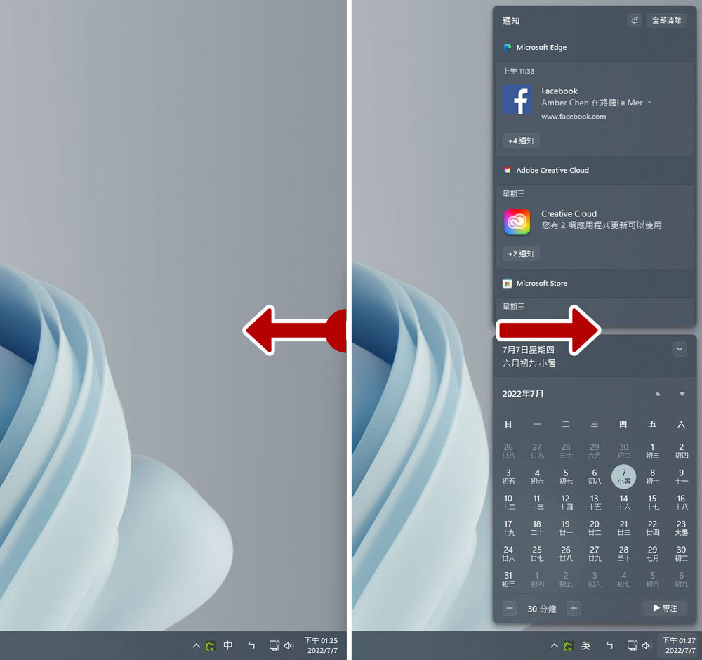 除了開始功能表之外,Windows 還有更多部分可以透過觸控手勢訪問,其中,小工具和通知中心的觸控手勢在初版 Windows 11 中就已經存在,而快速設定則是在 22H2 版中才加入的新手勢。