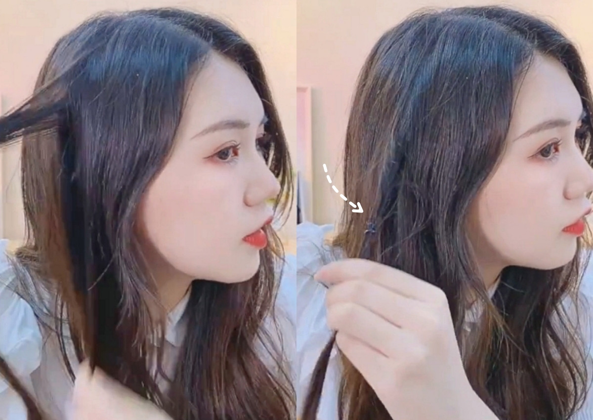 一般的一字夾、Y型夾等髮夾也很常有夾不緊的問題,我們可以在夾之前,先從要夾髮夾的部位內層挑出一束髮束,用橡皮筋綁起後、從中間反穿過去。