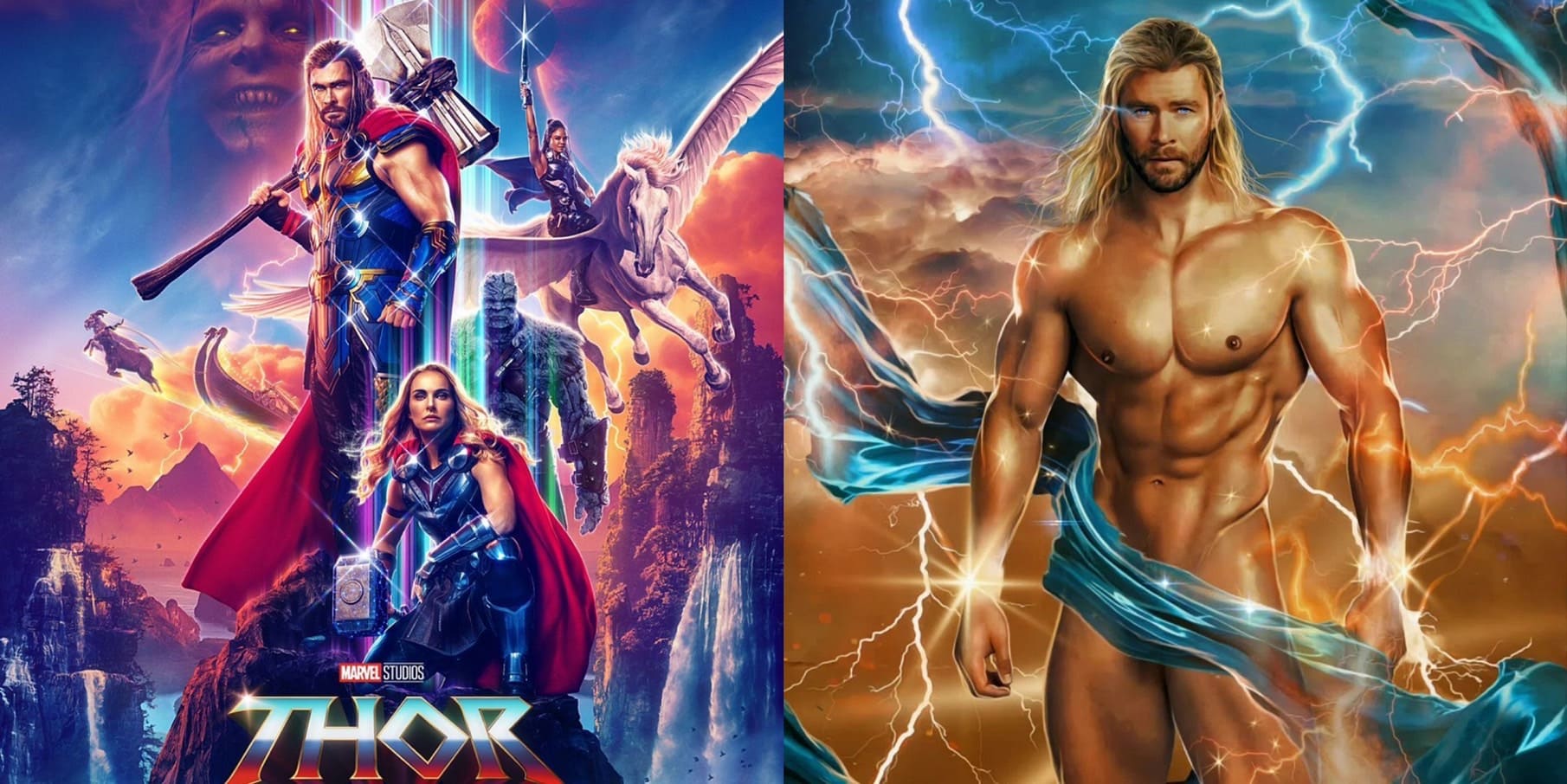 好啦說了這麼多壞話還是要講些好的吧~其實漫威的系列電影一直以來都不太花篇幅去琢磨角色間的愛情線,而由娜塔莉波曼(Natalie Portman)飾演的科學家珍佛斯特與索爾雖然是少數有被官宣的一對,但最後一次亮相,也只在於2013年上映的《雷神索爾2:黑暗世界》,之後九年的時間完全無消無息...這次以女雷神的方式登場的消息一出還是讓全網暴動!而今年41歲的奧斯卡影后娜塔莉波曼果然也沒辜負大家的期待,不但保持像剛出道時的凍齡外貌,還為了電影角色花了超過十個月健身,練就足以撐得起雷神之鎚的健壯手臂!