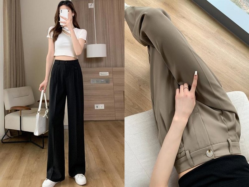 顯瘦單品推薦三:垂墜感西裝直筒長褲