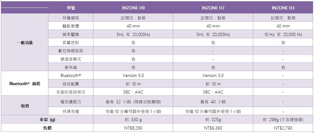 Sony INZONE H9 /H7 /H3 電競耳機在台推出