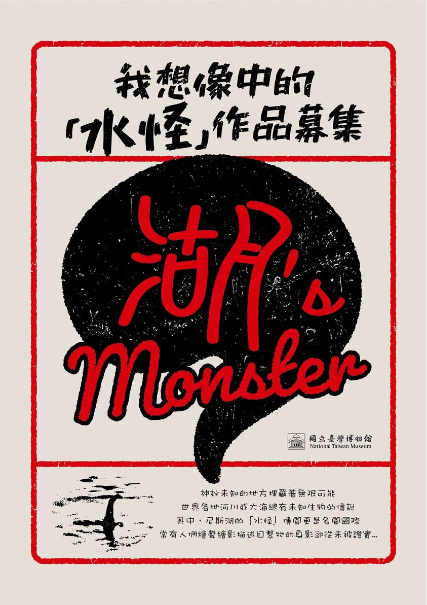 多年來世界各地的河川、湖泊總是會聲會影著尼斯湖水怪的傳聞,這次臺博館除了舉辦實體的水怪展,也舉辦了線上「水怪作品大募集」,讓你我都能發揮想像力畫出自己想像中的水怪,可以繪畫、黏土、陶土或雕塑等各種方式分享,7/31前拍攝照片上傳到臺博館FB留言串,就有機會讓你的作品照在《水怪展》中展出!
